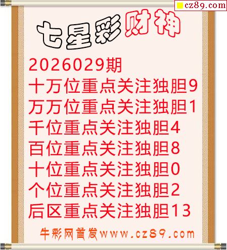 首页 > 七星彩预测 > 七星彩2026年029期财神独胆图迷